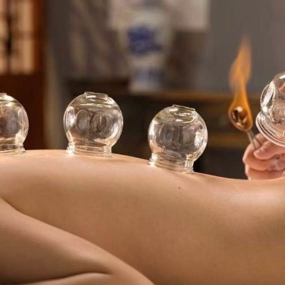 Durch das Erhitzen oder Absaugen der Luft im Inneren der Kugeln wird Unterdruck erzeugt- dies hilft bei Schmerzen und Verspannungen.